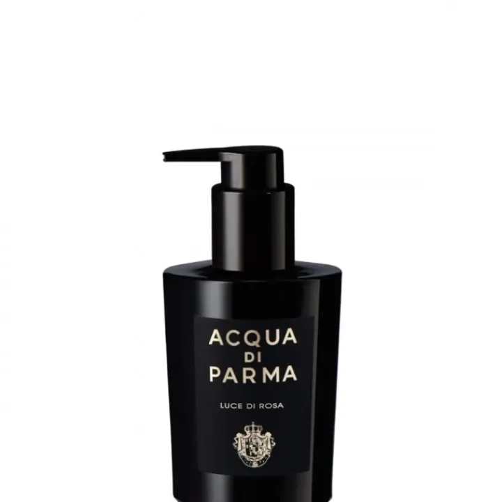 Le gel lavant pour les mains et le corps Luce di Rosa est riche en glycérine et se caractérise par une texture riche et une mousse légère.
