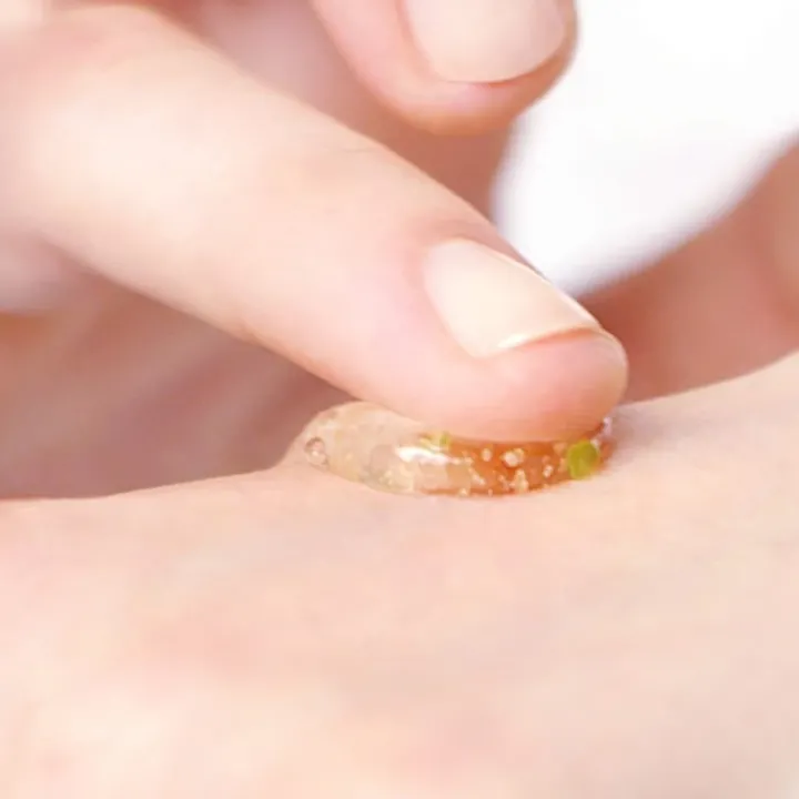 - Pour l’appliquer, prélevez une noisette de produit avec l’annulaire puis pressez la texture entre les deux annulaires pour éclater les billes. Pour finir, tapotez en douceur le produit sur le contour des yeux.