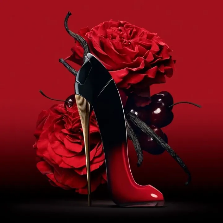 Ce parfum unique, avec son flacon stiletto dégradé rouge et noir et son talon doré, libère une fragrance addictive où se mêlent des notes ambrées, fruitées et florales de cerise noire, rose rouge et vanille.
