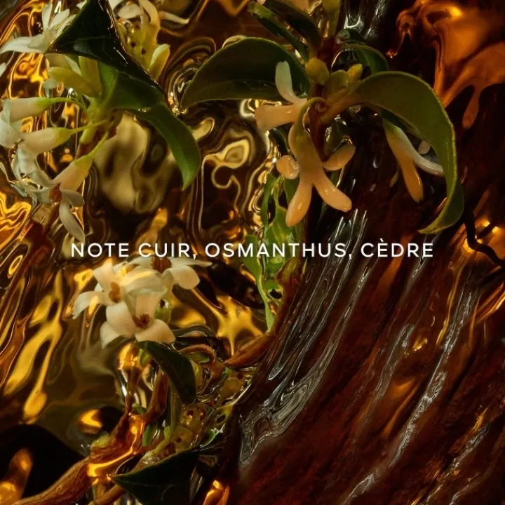 Cuir intense, la puissance d’un cuir qui se dévoile tout en contraste dans le secret de la nuit. Cèdre, note santal et note tabac soulignent ses accents les plus sombres, tandis que l’osmanthus le révèle.