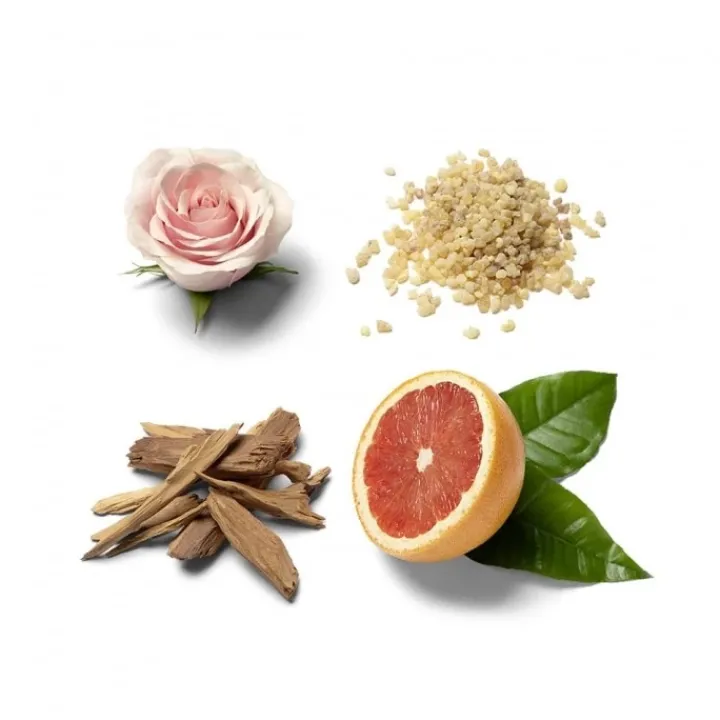 Les roses radieuses révèlent une note florale inattendue, tandis que le santal crémeux s’enveloppant de musc tisse un délicieux sillage évoquant l’ambre et la chaleur de la peau.