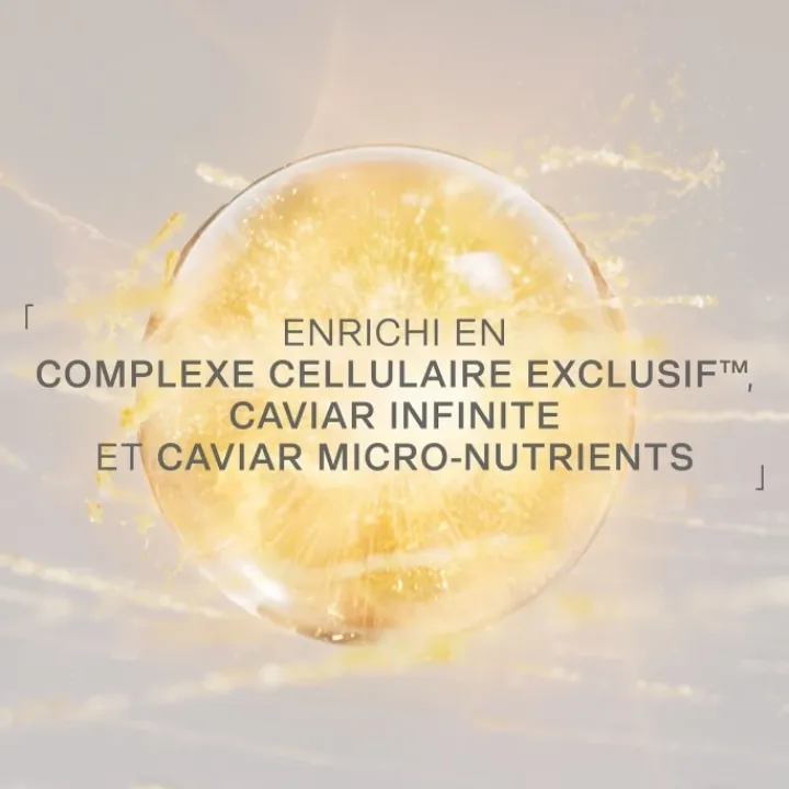 • Infusée de Caviar Infinite et de Caviar Micro-Nutrients ciblant à la fois les éléments horizontaux et les dimensions verticales de la peau, la formule est améliorée avec l’Exclusive Cellular Complex™
