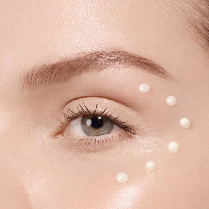 - Avec deux doigts, appliquez la crème sous l’œil et les paupières supérieures de l’intérieur vers l’extérieur de l’œil.