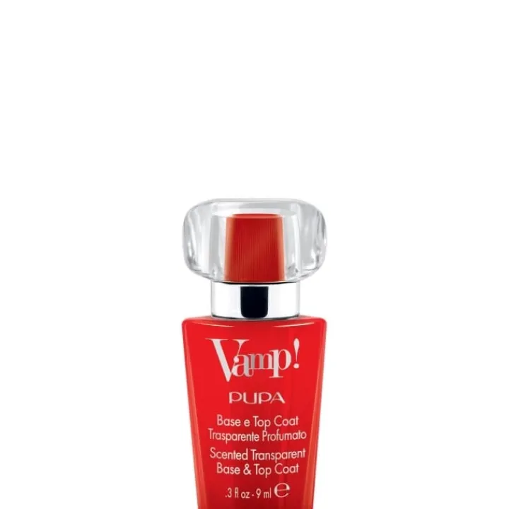 Vamp! est le vernis base et top coat décliné dans les mêmes fragrances que l’Eau de Parfum Vamp!, parfait combiné avec le Vernis à ongles Vamp!, pour un résultat professionnel. Utilisé comme base, il protège l’ongle et augmente l’adhérence du Vernis à ongles Vamp!. Utilisé comme top coat, il accentue la brillance, l’effet épaississant ainsi que la tenue, et agit comme un « booster de parfum » du Vernis à ongles Vamp!. Le parfum se révèle lorsque le vernis est sec et, grâce à la haute concentration de la fragrance présente dans la formule, les ongles sont délicatement et durablement parfumés. Le flacon est une véritable miniature de l’Eau de Parfum Vamp! et reprend la forme iconique du Mascara Vamp!. L’applicateur « fan brush » – au format plat en éventail doté de 300 poils arrondis – combiné au bouchon interne nervuré assure une application facile et fluide et un dosage uniforme et contrôlé.