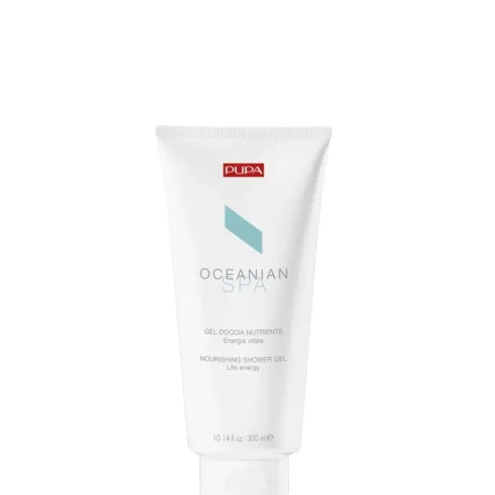 Oceanian Spa PUPA Gel Douche enrichi avec huile de noix de coco connue pour ses propriétés nourrissantes. Spécialement conseillé pour combattre la déshydratation et pour apaiser la peau sèche et rêche.
