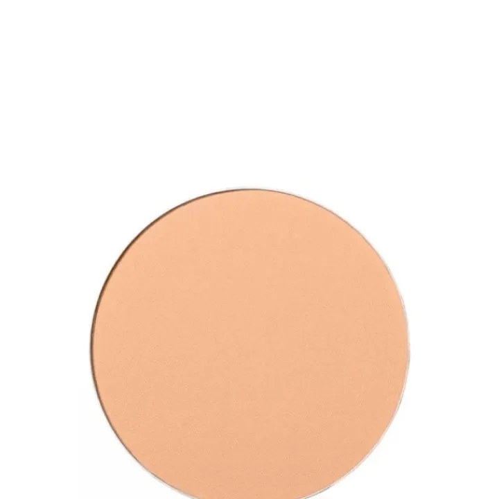 - Passez légèrement une éponge sèche ou humide sur la surface du compact et appliquez le fond de teint uniformément sur le visage, du centre vers l’extérieur.