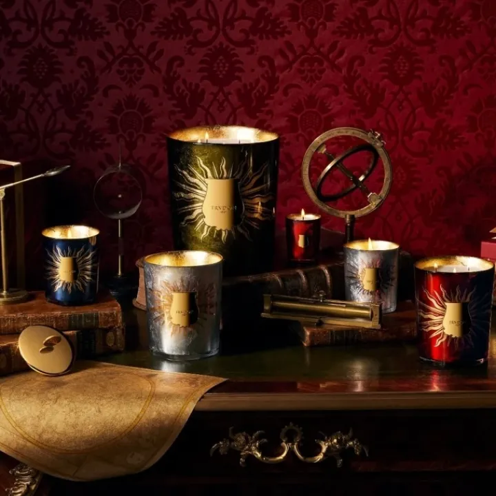 Pour les fêtes, Trudon vise les étoiles et propose une collection astrale de quatre bougies parfumées qui s’illuminent chacune de rayons d’or.