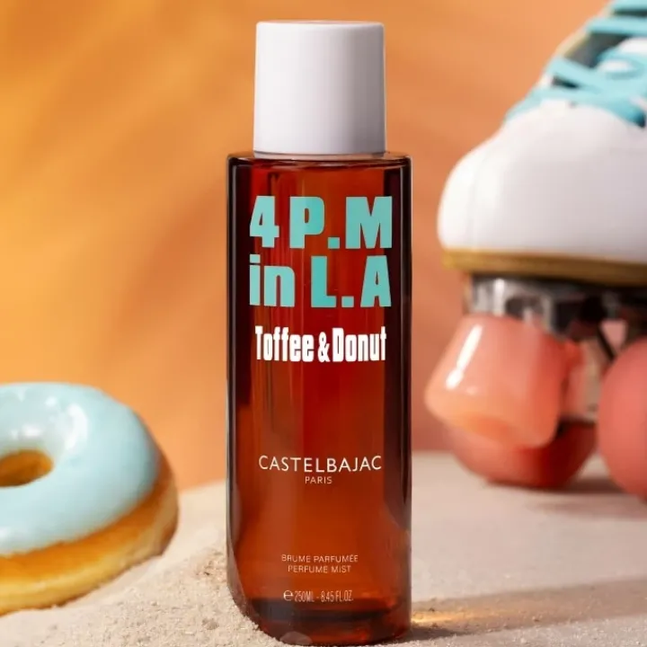 À Los Angeles, tout est possible. À 4 heures de l’après-midi, entre audace et plaisir, le caramel fondant du toffee s’entrelace avec l’irrésistible douceur sucrée du donut pour une fragrance à la fois délicieuse et envoûtante.
