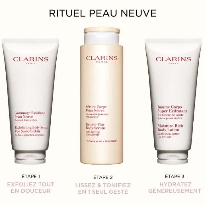 Le sérum perfecteur pour le corps qui retexturise pour un effet peau neuve immédiat. Découvrez toute l’expertise anti-âge visage Clarins maintenant dans un soin corps.
