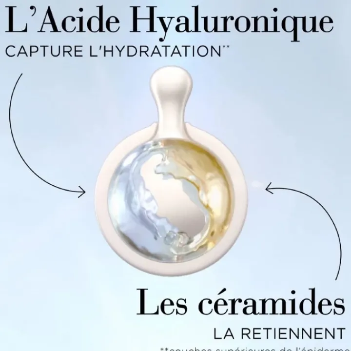 L’acide hyaluronique capture l’hydratation tandis que les céramides, qui renforcent la barrière cutanée, l’empêchent de s’échapper. Sa formule ultra-puissante est encapsulée pour garantir fraîcheur et efficacité.