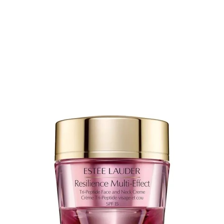 Destinée au soin du visage et du cou, la crème Tri-Peptide SPF 15 Resilience Multi-Effect Estée Lauder offre de multiples bienfaits sur la peau. Outre sa capacité à hydrater et nourrir l’épiderme en profondeur, elle contribue à restaurer le film hydrolipidique de la peau. L’épiderme est ainsi protégé du dessèchement cutané pour conserver un taux d’hydratation optimal tout au long de la journée. Cette action hydratante est complétée par des principes actifs au pouvoir liftant, qui augmentent la production de collagène afin de raffermir les tissus cutanés. Pour renforcer le pouvoir anti-âge de cette crème, un filtre UV SPF 15 vient enrichir la formule afin de protéger la peau des dommages liés aux radicaux libres.