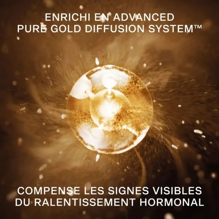 Doté de l’Advanced Pure Gold Diffusion System™, Pure Gold Baume Radiance Nocturne, enrichi en Complexe Cellulaire Exclusif™ et en Complexe Meno Activé d’Or et de Peptide, aide à contrer les effets visibles des changements hormonaux en favorisant le renouvellement de la peau, en stimulant la production de collagène et en atténuant les signes visibles de l’âge, en nourrissant profondément la peau pendant la nuit.