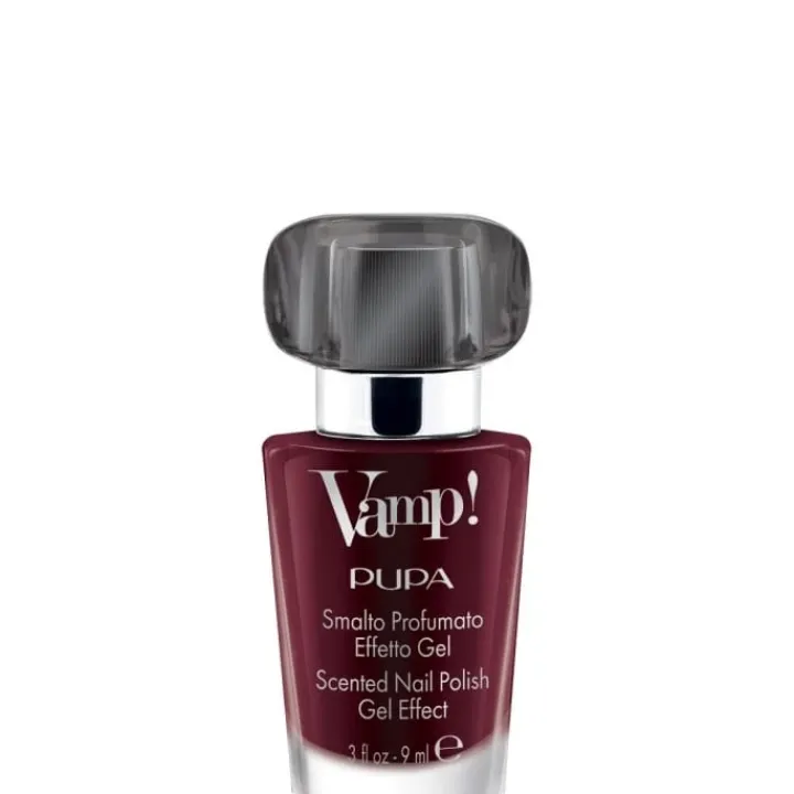 Vamp! est le vernis décliné dans les mêmes fragrances que l’Eau de Parfum Vamp!, pour des ongles délicatement parfumés à l’effet gel ravissant. Sa texture unique permet d’obtenir un effet épaississant tridimensionnel à la brillance extrême. Les ongles gagnent en volume grâce à un film de couleur homogène à la finition ultrabrillante, exceptionnellement résistant aux écaillements. Le parfum se révèle lorsque le vernis est sec et, grâce à la haute concentration de la fragrance présente dans la formule, les ongles sont délicatement et durablement parfumés. Le flacon rappelle une véritable miniature de l’Eau de Parfum Vamp! et reprend la forme iconique du mascara Vamp!. L’applicateur « fan brush » – au format plat en éventail doté de 300 poils arrondis – combiné au bouchon interne nervuré assure une application facile et fluide et un dosage uniforme et contrôlé de la couleur.